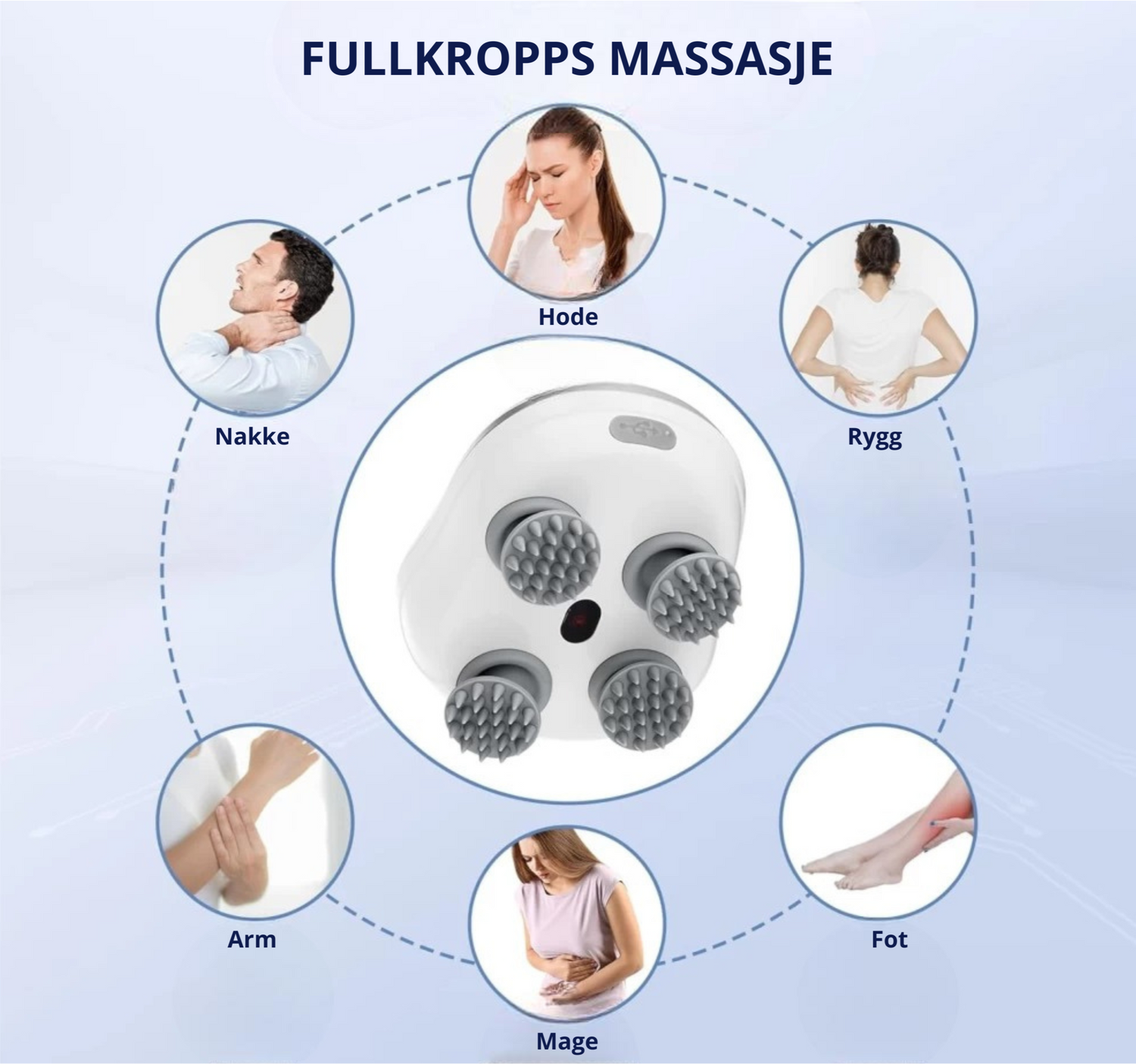 Med vårt massasjeapparat får du lindring der du trenger det – på sekunder. Den roterende massasjen løsner spenninger i nakke og hode, som et lite spa hjemme. Perfekt etter jobb, trening eller lange dager foran skjermen.